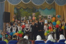 Укучылар шарлар, чәчәкләр, транспарантлар, бабаларының, авылдашларыбызның фотоларын тотып "Үлемсез полк" акциясенә кушылдылар. Тантаналы төстә атлап, һәйкәл янына килделәр.