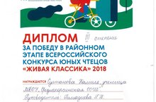 30 марта на базе МБОУ «Нижнеметескинская ООШ» был проведен районный этап Всероссийского конкурса юных чтецов «Живая Классика- 2018». Ученица 9 класса нашей школы Султанова Камиля была награждена Дипломом III степени, прочитав отрывок из произведения Л.Чарской «Моя мамочка». Её руководитель – учитель русского языка и литературы Гимадиева Гульгена Нурулловна.