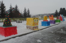 Яңа ел бәйрәме якынлашуга, мәктәп тирәсе ел саен кардан ясалган сыннар белән бизәлә. Быел да укучылар һәм укытучылар фантазияләрен эшкә җигеп, төрле әкият геройларыннан матур мәйданчык ясап куйдылар. Молодцы!