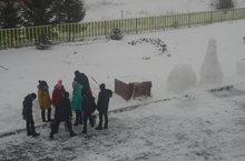 Мәктәптә Яңа ел бәйрәменә әзерлек эшләре башланды. Укучылар классларны, залларны бизәделәр, урамда кардан сыннар да ясый башладылар.