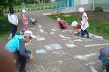 12 июнь - Россия көне! Шушы форсаттан файдаланып, укучылар белән туган илебез, дәүләтебез турында сөйләшенде, презентацияләр күрсәтелде. Укучылар асфальтка Россия көненә багышланган рәсемнәр ясадылар, кызыклы уеннар уйнадылар.