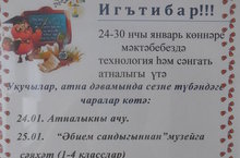 25 нче гыйнвар көнне башлангыч сыйныф укучылары мәктәп музеена сәяхәт кылдылар. Технология укытучысы Солтанова И.А. укучыларны борынгы кул эшләре: күкрәкчәләр,чиккән сөлге үрнәкләре, калфаклар, чигүле читек, чүәкләр белән таныштырды. Укучылар борынгы кул эшләрен зур кызыксыну белән карадылар.