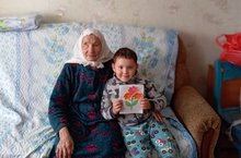 1 нче сыйныф укучысы Ахмадуллин Ранил әбисен Өлкәннәр көне белән котлады.