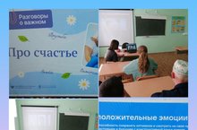 Цель занятия: осмысление учащимися общечеловеческой ценности «счастье» и формирование представления о ней на личном и общественном уровнях. На занятии были использованы видеофрагменты и анимационные ролики, игровые элементы и дополнительные материалы. Учащиеся посмотрели видео с Николаем Цискаридзе, а после —ролик о счастье «Надо просто быть собой»: видео о счастье с ученым и его сыном. После просмотра учащиеся вместе с учителем обсудили видео: выделили главные элементы счастья, сделали выводы о том, что может сделать людей счастливыми.