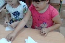 "Тирләп эшләсәң, тәмләп ашарсың" . Зур төркем балалары ашу өчен салфеткалар эзерли.