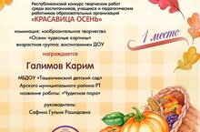 Безнең бакча балалары төрле конкурсларда катнашалар, зур җиңүләр яулыйлар. Республика күләмендә үткәрелгән рәсем конкурысында катнашып, Галимов Кәрим беренче урын алды.
