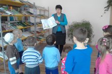 Балаларда китапханәче хезмәтенә карата ихтирам, китапханәдә үз-үзеңне тота белү сыйфатлары тәрбияләү нияте белән китапханәгә экскурсия оештырдык. Балаларга экскурсия бик ошады. Китапханәче Флера апалары балаларны китапханә белән таныштырды, бик кызыклы, эчтәлекле әңгәмә корды, балаларга карарга, төрле әсәрләрдән тупланган ,"Ирҗан" дигән видео диск бүләк итте.