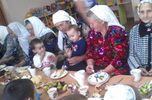 Өлкәннәр атналыгын төгәлләп бүген бакчада күңелле бәйрәм оештырдык. Балалар өлкәннәрне куандырып бөтен һөнәрләрен күрсәттеләр. Өлкәннәр өчен чәй табыны әзерләнде.