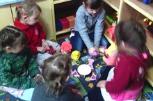Өлкән төркем балалары тәрбиячеләрнең зур булышчылары. Алар кече төркем балалары белән төрле уеннар оештырырга ярдәм итәләр. Кече һәм өлкән төркем балаларының килешеп уйнаулары үзара дустанә мөнәсәбәт тудыруга ярдәм итә.