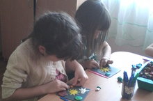Балалар кисеп ябыштыру шөгылендә "Ракеталар галәмдә" дигән темага күмәк эш башкардылар. Шөгыльнең максаты балаларның космонавтика турында белемнәрен формалаштыру, алган белемнәрен куллана белү һәм кызыксынучанлык уяту иде.
