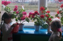Безнең уен бүлмәсенең тәрәзәләре бик зур, анда гөлләр иркен сулыш алып үсәләр, гел чәчәктә утыралар. Без аларны бик яратып карыйбыз, тәрбиялибез. Көн саен су сибәбез, төпләрен йомшартабыз, корыган яфракларын җыябыз. Бакчада алган эш күнекмәләре безгә өйдә әниләребезгә булышканда да ярдәм итә.
