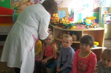Безнең күрше бүлмәдә генә медпункт урнашкан. Фельдшер апалар безнең янга кереп гел хәлләребезне сорашып, чисталыкны тикшереп, тиешлевакытта прививкаларны ясап торалар. Ак халатлы апаларны без көтеп алабыз, чөнки алар файдалы киңәшләр бирәләр, чисталыкка өндиләр.