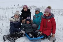 Яңа ел каникуллары бик күңелле үтә. Һава шартлары да бик яхшы, балалар саф һавада рәхәтләнеп чана шуалар.