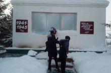 6 нчы класс укучыларына ел буена Бөек Ватан сугышында һәлак булганнар истәлегенә куелган һәйкәлне карап тору йөкләнелгән иде. Алар бу эшне башкаруда бик зур җаваплылык тоеп һәм тырышлык куеп башкаралар. Буген дә алар һәйкәл әйләнәсен кардан чистарттылар.