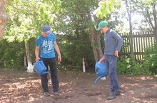 «Акчарлак» лагере. Инструктаж уздырганнан соң, иртәнге зарядка ясалды. Коллектив бердәмлеге булдыру өстендә коллектив уен уйнатылды. Көн хезмәт десанты белән дәвам итте. Мәктәп тәҗрибә участогында чабылган печән тырмаланды, чәчәклектә чүп уталды. Көндезге аштан соң саф һавада уеннар уйнатылды.