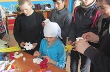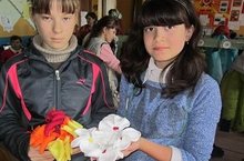 Кызлар һәм егетләр тырышып чәчәкләр ясадылар. Шушындый чәчәкләр килеп чыкты.
