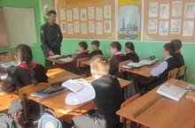 Участок инспекторы Р.Г.Рахматуллин мәктәпкә укучылар белән очрашуга килде. Ул җәйге ял вакытында юл йөрү, пожар куркынычсызлыгы техникасы кагыйдәләрен төгәл үтәргә кирәклеген искәртте. Каникул вакытында барлык төр кагыйдәләргә дә игътибарлы булырга кирәклеген әйтте.