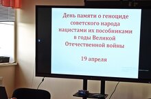 19 апреля - День единых действий в память о геноциде советского народа нацистами и их пособниками в годы Великой Отечественной войны. 19 апреля – особая дата в сохранении исторической правды о преступлениях нацистов. Проведены единые уроки памяти в школе.