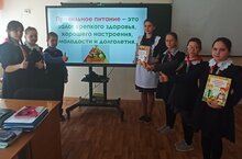 В рамках Всероссийской социальной акции "Здоровое питание в школе и дома" ученица 9 класса С.Рахматуллина провела с учащимися 5-7 классов интерактивное занятие по правильному питанию "Я есть то, что я ем". Задачи урока: расширить знания учащихся о здоровье, познакомить подростков с основами и правилами здорового питания.