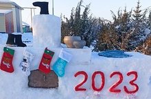 Яңа елга әзерлек башланды. Мәктәп яны кар сыннары белән бизәлде.