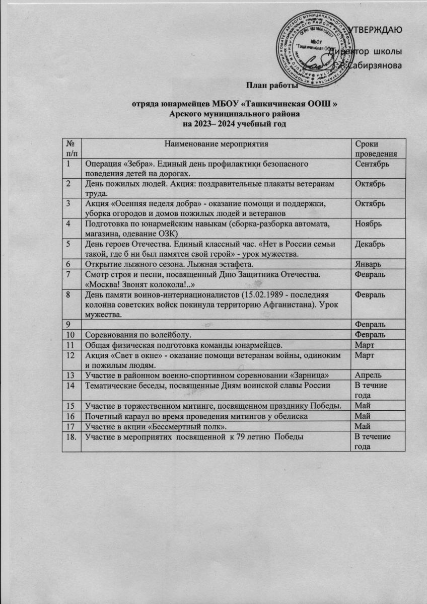 План совместных мероприятий ОМВД России по Арскому району и МБОУ «Ташкичинская ООШ»