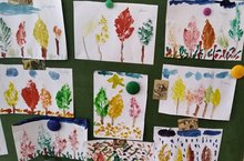 - Обучать передавать в рисунке строение дерева - нетрадиционной техникой- печать листьями.
