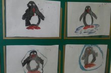 Формировать умение выразительно передавать в рисунке образ пингвина, его характерные особенности: форму тела, головы, расположение крыльев, цвет оперения;