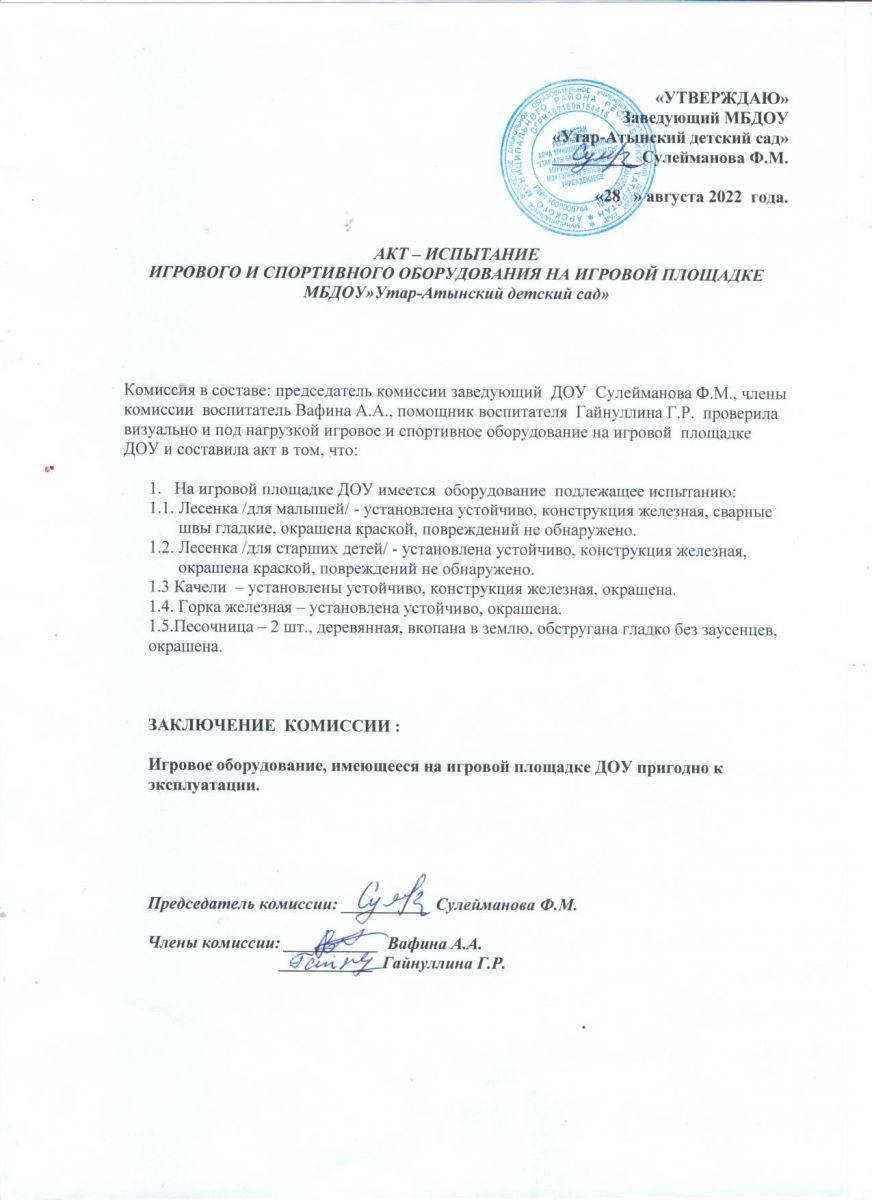 Акт испытание игрового и спортивного оборудования