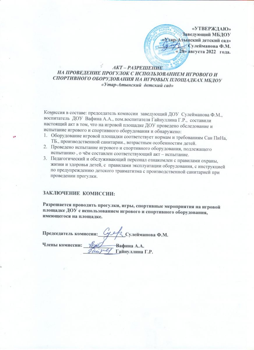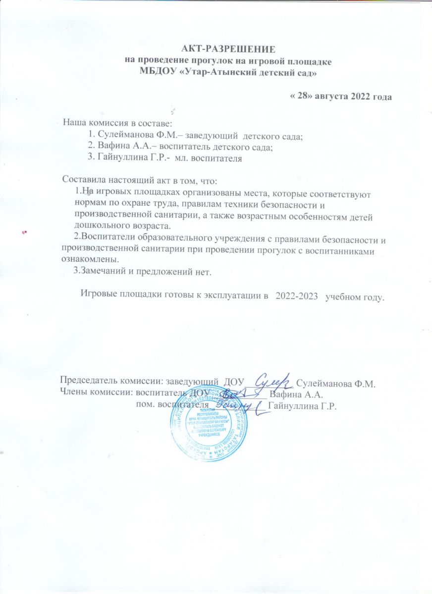 Акт разрешение на проведение прогулок