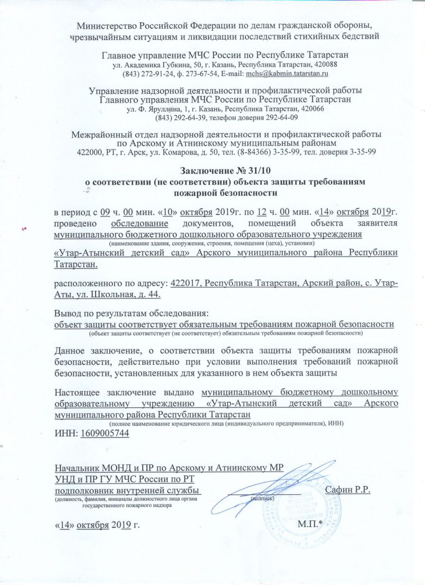 Заключение пожарной безопасности