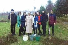 2018-2019 нчы елгы чыгарылыш класс укучылары, класс җитәкчеләре Лилия Нуртдиновна белән бергә, мәктәп бакчасына истәлеккә 2 төп алмагач утырттылар.
