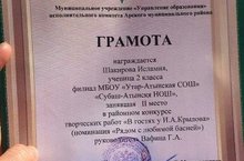 Районда "Крылов мәсәлләрендә кунакта" дип исемләнгән конкурста Субаш-Аты башлангыч класс укучысы Шакирова И. 2 нче урынны алды.