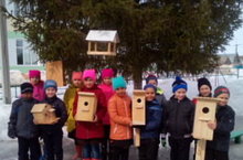 Утар- Аты мәктәбенең башлангыч класс укучылары сыерчыкларны оялар белән сөендерделэр.