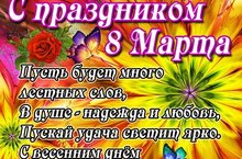 Без барлык хатын-кызларыбызны ихлас йөрәктән бәйрәмнәре белән тәбрик итәбез.Хөрмәтле кояшка тиң гүзәл затларыбыз! Тормышыгыз шатлык белән тулсын.Гомер буе якын кешеләрегезнең кадерлеләре булып яшәргә язсын. Безнең кыштан арыган йөрәкләребезгә язның беренче җылы нуры булып керүче бүгенге бәйрәм сәламәтлек, бәхет һәм бәрәкәт китерсен!