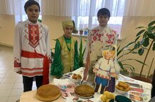 Ученики 6 класса провели выставку, в рамках которой гости познакомились с культурой народов, проживающих в республике. На выставке они рассказали о кухне и костюмах татарского, русского, марийского, башкирского народов -
