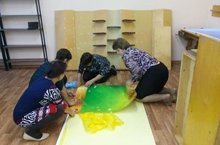 Дәресләр тәмамланып, укучыларны озатканнан соң, мәктәп тормышын чагылдырган стендларны яңартып ясау дәвам итә.