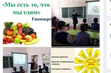 В рамках Всероссийской социальной акции "Здоровое питание школьника" ученица 9 класса провела с учащимися 5-7 классов интерактивное занятие по правильному питанию "Я есть то, что я ем". Задачи урока: расширить знания учащихся о здоровье, познакомить подростков с основами и правилами здорового питания, познакомить подростков с пословицами и поговорками о правильном питании.