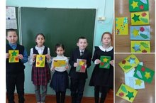 Субаш-Аты башлангыч сыйныф укучылары хәрби операциядә катнашучы ир-егетләрне бәйрәм белән котлап открыткалар ясадылар.