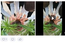 Акция символик рәвештә чәчәкләрне сугарып үлүчеләрне эчертергә чакыра.Бу акциядә 5 нче класс укучылары суны кулларына җыйдылар һәм үсемлекләргә сиптеләр. -