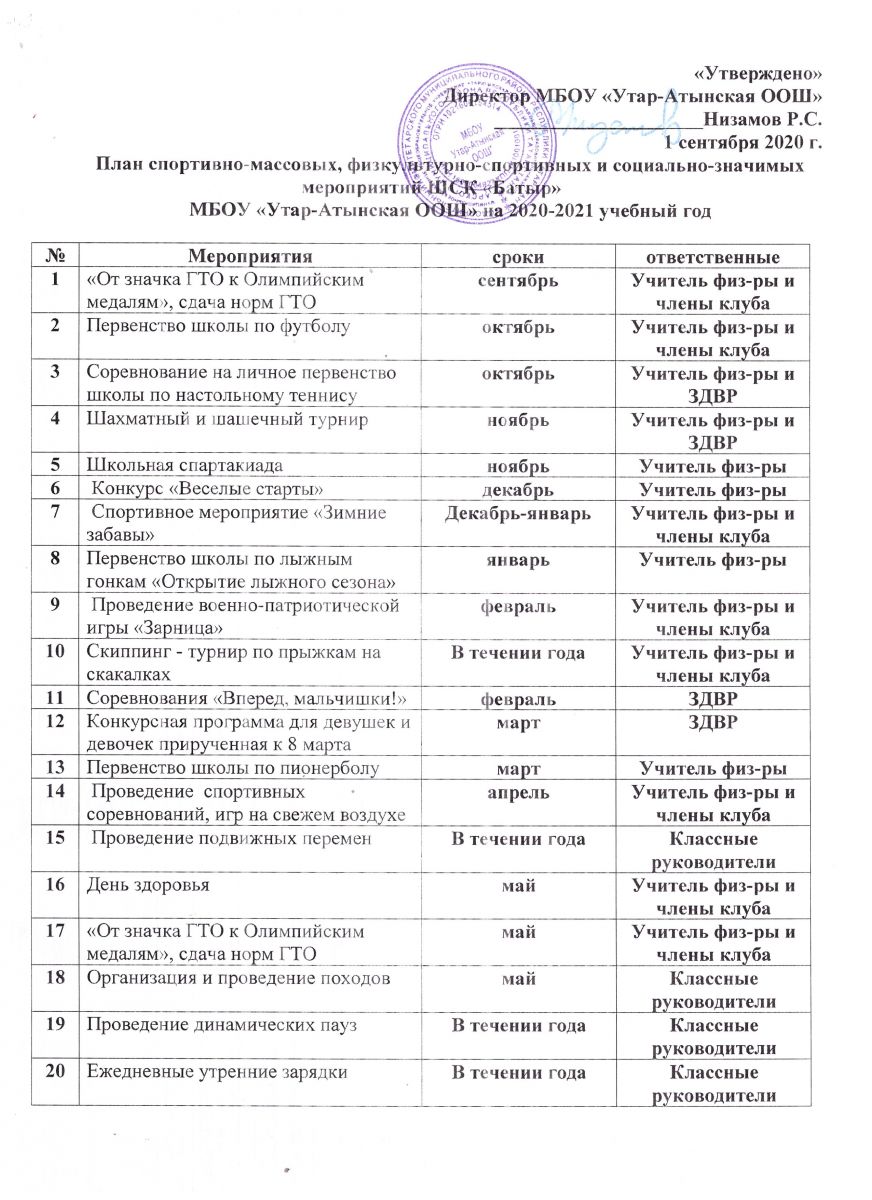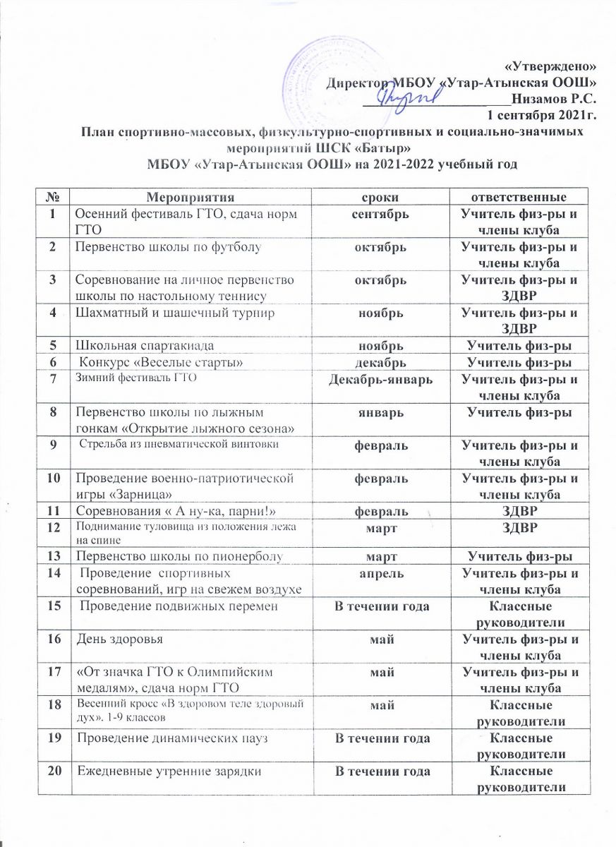 План спортивно-массовых, физкультурно-спортивных и социально-значимых мероприятий на учебный год