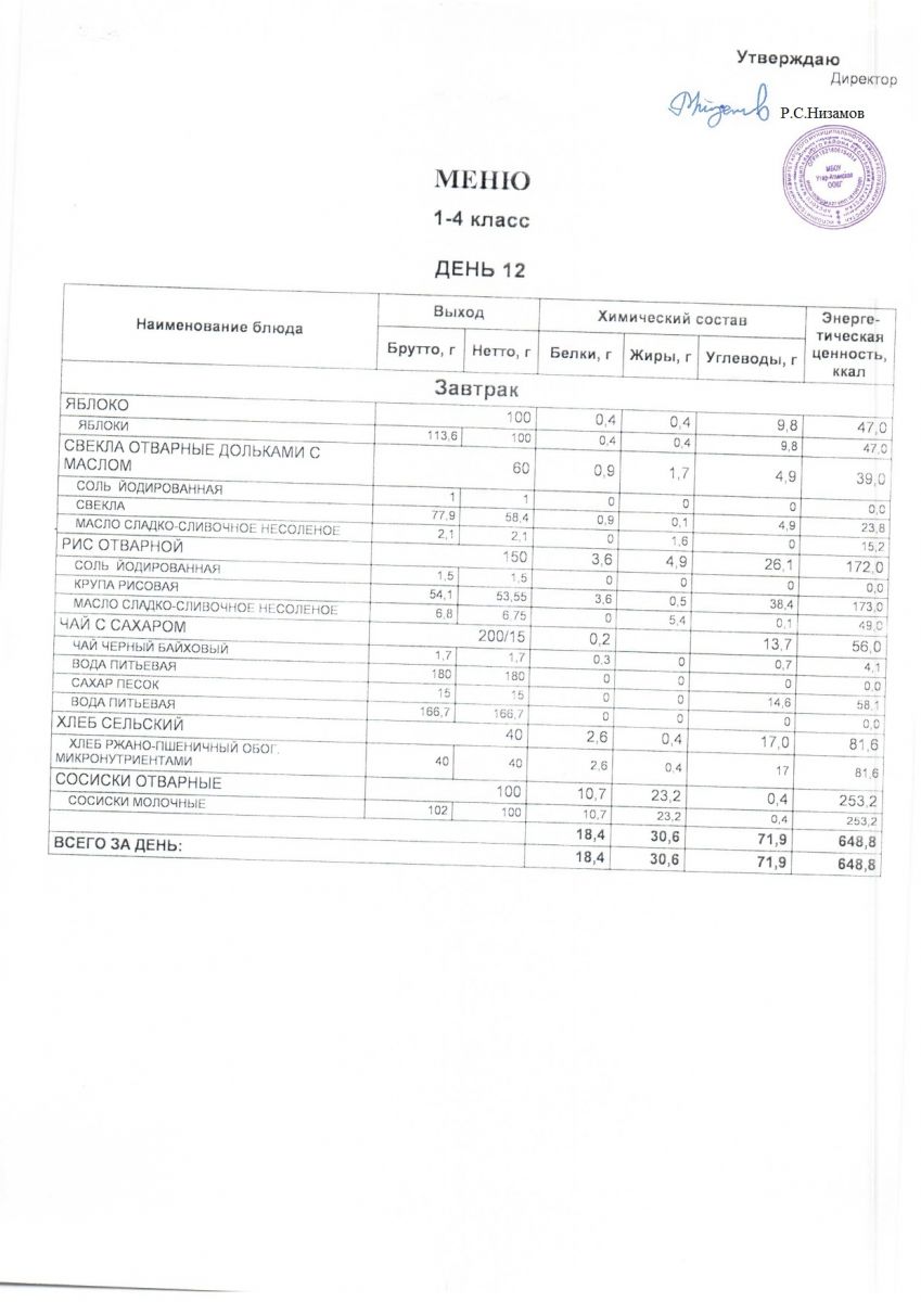 12 дневное меню 1-4 классов