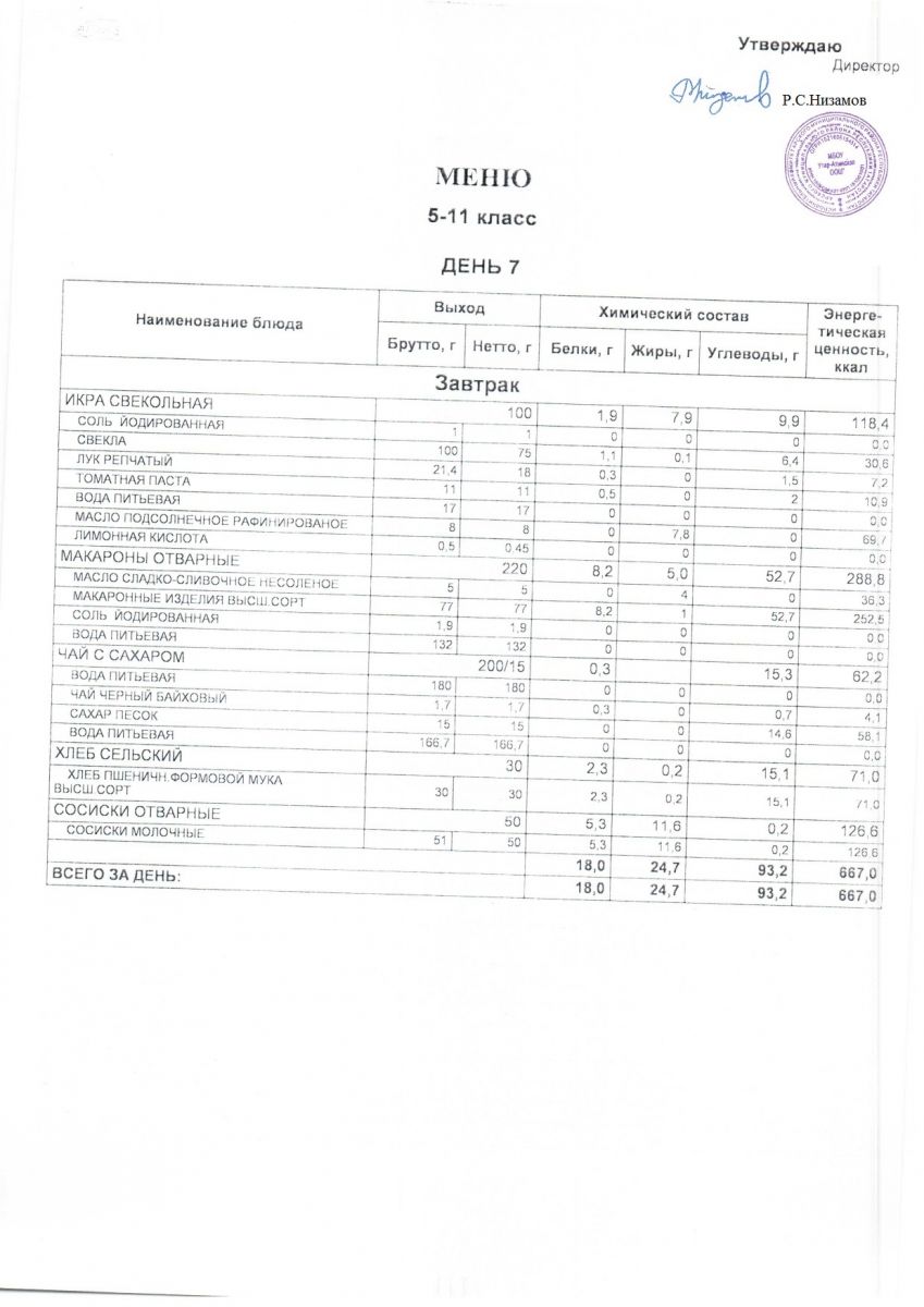 12 дневное меню 5-9классов