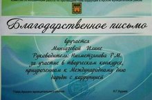 На днях были подведены итоги районного творческого конкурса, приуроченного к Международному дню борьбы с коррупцией. Учащиеся школы М.Илина и К.Александра были награждены благодарственными письмами главы Арского муниципального района РТ Нуриева Ильшата Габделфартовича. -