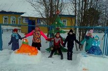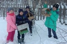 Югары Бирәзә башлангыч мәктәбе укучылары үзләре ясаган сыннар янында