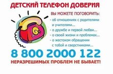 17 мая в нашей школе проводился Международный день детского телефона доверия. Фонд поддержки детей провел общероссийский марафон "Скажи, о чем молчишь". Его цель - повышение узнаваемости детского телефона доверия, а также повышения уровня доверия к телефону среди детей и подростков как услуге экстренной психологической помощи в конфликтных ситуациях, при стрессах, суицидальных настроениях, межличностных проблемах. Учащиеся смотрели прямую трансляцию из московской студии, где выступали психологи, популярные для подростков артисты, музыканты и спортсмены.
