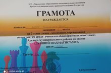 Районыбыз мәктәпләре арасында оештырылган "Иң яхшы шахматчы-2022" ярышында физика укытучысы Г.Г. Хидиятуллина җитәкчелегендәге командабыз төп мәктәпләпләр арасында II урынга лаек булды. Котлыйбыз! Киләчәктә дә уңышлар телибез!