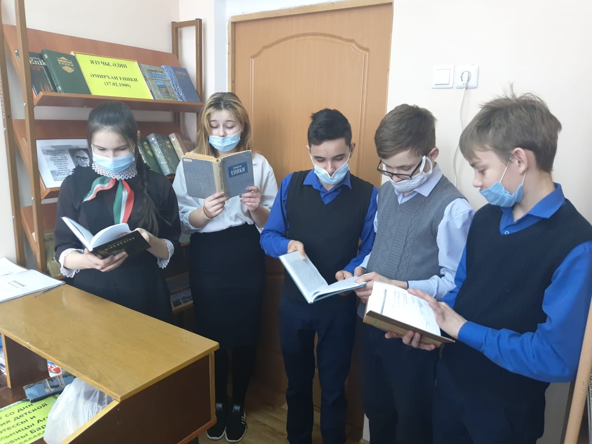 Мәктәбебездә шагыйрь Муса Җәлилнең тууына 115 ел тулуга карата бик күп чаралар: класс - тәрбия сәгатьләре, әдәби кичәләр, флешмоблар, әңгәмәләр, викториналар үткәрелде. Шуларның берсе бүген Муса Җәлилнең туган көненә багышлап, 8,9 сыйныф укучылары әдәби кичә уткәрделәр. Кичәдә батыр шагыйрьнең улемсез шигырьләре яңгырады. Тормыш юлына тагын бер кат кузәту ясадылар.
