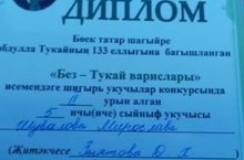 Халкыбызның милли үзенчәлекләре, күркәм сыйфатлары, аның бөек шәхесләре үрнәгендә укучыларны тәрбияләүдә, буыннар бәйләнешен тәэмин итүдә әһәмиятле чара булуын исәпкә алып, “Без - Тукай варислары” исемендәге шигырь укучылар конкурсында 5 нче сыйныф укучысы М. Шувалова (Җитәкчесе Д.Х. Зыятова) 2 нче урын алды. Котлыйбыз!