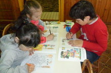 Режим моментларында төрле матур рәсемнәр буйыйбыз, кызыклы эшләр белән шөгыльләнәбез.