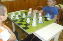 Укырга әзерлек төркемендәге балалар белән шашка уйнарга өйрәнәбез. Уен аша уйлау сәләтен үстерәбез.